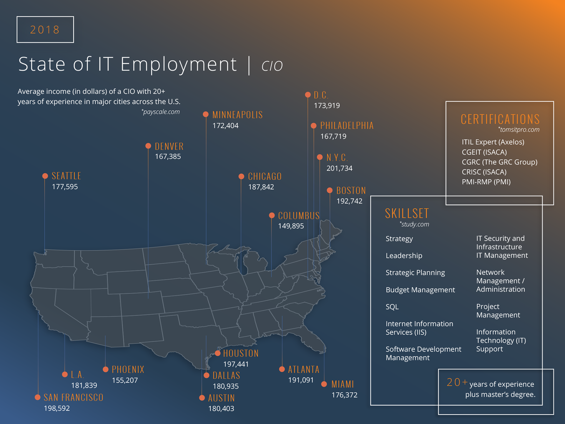 Each year, Summit does a thorough analysis to assess the state of the IT field and present it to their clients. This includes data to show average salaries in each state, average years of experience and other facts about each career. They needed individual infographics to map out each job title, all of which formed a united whole. They then wanted to take these graphics and create an ebook offer, with additional insight into the field of IT. The idea is that in seeing these graphics, clients, both existing and potential, will see Summit as an industry thought leader. Likewise, by enticing them to the gated ebook offer, they would receive new subscribers to their content. They also needed a design that reflected the changes the updates we were making to their brand.